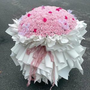 Mẫu Hoa Bó To Khổng Lồ 999 Bông Hồng Kem Dâu