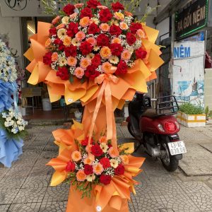 Mẫu Hoa Kệ Khai Trương Tông Cam Đỏ