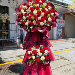 Mẫu Hoa Khai Trương Màu Đỏ Kem 3 Tầng