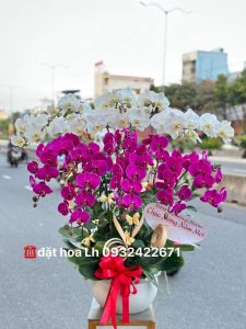 Đặt mua Chậu Lan Hồ Điệp Trắng Phối Tím 16 Cành